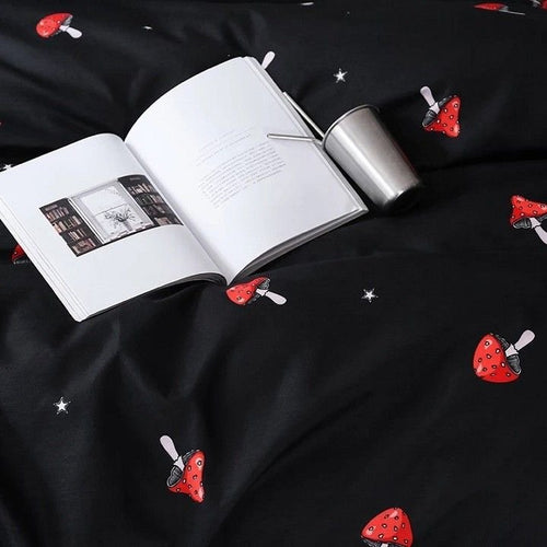 Black Ground And Red Mushroom Double Sided Pillow And Duvet Cover